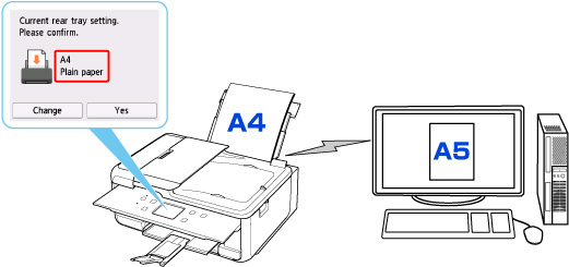 Dacă dimensiunea de pagină de pe ecranul senzitiv corespunde cu dimensiunea hârtiei încărcate în tava din spate, selectaţi Da (Yes).