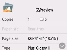 • Selectând Examinare (Preview), puteţi să examinaţi o imagine a rezultatului de imprimare pe ecranul de examinare. Răsfoiţi fotografia pentru a modifica afişajul.