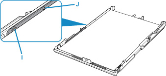 • Menţineţi înălţimea stivei de hârtie sub proeminenţele (J) ale ghidajelor pentru hârtie.