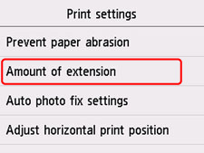 Această secţiune descrie procedura de modificare a setărilor din ecranul Setări dispozitiv (Device settings), urmând ca exemplu paşii pentru a specifica Mărime extindere (Amount of extension).