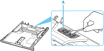 Puhastage kassetipatja (A) niisutatud vatipulgaga külgsuunas.