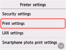 Kuvatakse ekraan Seadme määrangud (Printer settings).