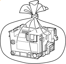 Pange kasutatud kassett kohe uue hoolduskassettiga kaasas olevasse kilekotti ja sulgege kott, sidudes ava tihedalt, et vältida tindi lekkimist.