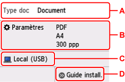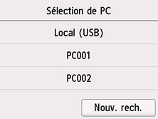 Dans le cas d'un ordinateur connecté à l'aide d'un câble USB, sélectionnez Local (USB) ; pour un ordinateur connecté au réseau, sélectionnez l'ordinateur vers lequel transférer les données numérisées.
