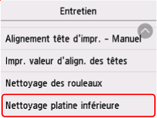 4. Sélectionnez Nettoyage platine inférieure.