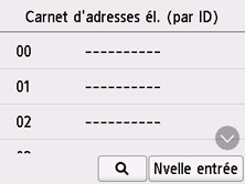 Si vous sélectionnez Nvelle entrée, un numéro ID non enregistré est sélectionné dans l'ordre numérique.