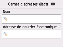 L'écran servant à enregistrer l'adresse électronique et le nom du destinataire s'affiche. Passez à l'étape suivante.