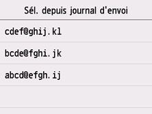 Lorsque vous sélectionnez cette méthode d'enregistrement, l'écran de sélection de l'adresse électronique à partir des journaux d'envoi est affiché.