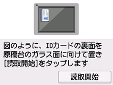 表示される案内に従ってIDカードの裏面を下に向けて原稿台にセットし、[読取開始]をタップする