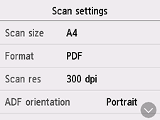 Wanneer het standby-scherm voor scannen wordt weergegeven, selecteert u Instellingen (Settings) om het instellingsitem te selecteren. Veeg om instellingsitems weer te geven en selecteer het instellingsitem om de instellingen weer te geven. Selecteer om de instelling op te geven.