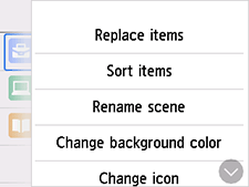 - U kunt de drie menu-items configureren die op de HOME-schermen worden weergegeven.