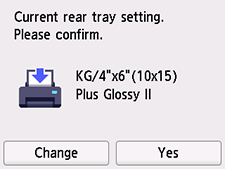 إذا كان حجم الصفحة ونوع الوسائط الموجودان على شاشة باللمس يتطابق مع حجم الورق الذي تم تحميله في الدرج الخلفي ونوعه، فقم بتحديد Yes.