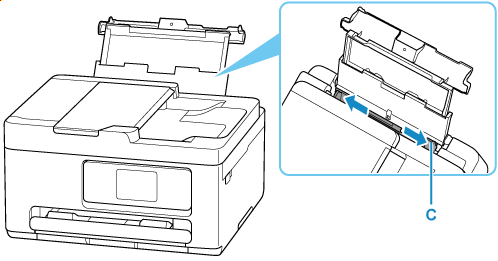 قم بإزاحة موجه الورق (C) الموجود على اليمين لفتح موجهي الورق.