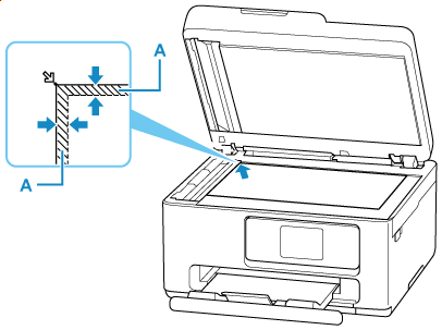 قم بوضع المستند الأصلي مع توجيه الوجه المطلوب مسحه ضوئيًا لأسفل على السطح الزجاجي وقم بمحاذاته مع علامة المحاذاة . الأجزاء الموضوعة على المنطقة المخططة لن يتم مسحها ضوئيا.
