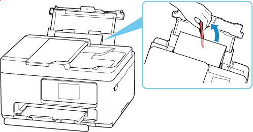 Kui laadite paberi tagumisele alusele, tehke seda nii, et prinditav pool jääb ÜLES, ja joondage parem ja vasak paberijuhik paberivirnaga.