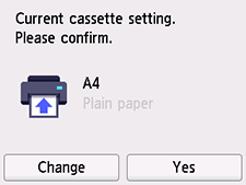 Als het paginaformaat op het aanraakscherm overeenkomt met het formaat van het papier in de cassette, selecteert u Ja (Yes).