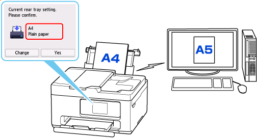 Als het paginaformaat op het aanraakscherm overeenkomt met het formaat van het papier in de achterste lade, selecteert u Ja (Yes).