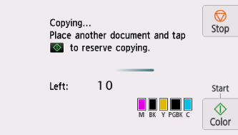Ha beolvasás közben az érintőképernyőn megjelenik a Nem sikerült lefoglalni a másolási feladatot. Kezdje elölről. (Failed to reserve the copy job. Start over from the beginning.) üzenet, akkor válassza az OK gombot, és a Stop gombot megérintve szakítsa meg a másolást. Ezt követően végezze el azoknak a dokumentumoknak a másolását, amelyeknek a másolása nem fejeződött be.