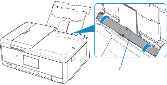 Zamknij delikatnie pokrywę otworu podajnika (F).