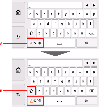 Imprimanta are un mod de introducere pentru litere şi alt mod pentru numere şi simboluri. Pentru a comuta modurile, atingeţi