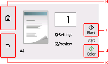 Raak het HOME-scherm op het aanraakscherm aan met uw vingertop om menu's te selecteren voor kopiëren, scannen en andere functies.