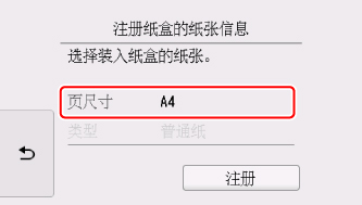 在页尺寸中选择装入纸盒的纸张尺寸,然后选择注册。