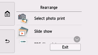 La pantalla táctil vuelve a la pantalla del menú de impresión de la tarjeta de memoria.