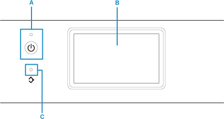 - A: Botón ACTIVADO (ON)/Lámpara de ACTIVADO (ON)