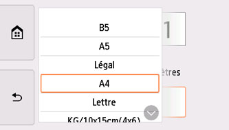 D : Spécifiez le format de page et le type de support.
