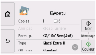 Une fois la numérisation terminée, l'écran de confirmation des paramètres d'impression s'affiche.