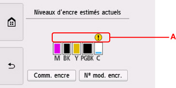 Un symbole s'affiche dans la zone A en cas d'informations sur le niveau d'encre restant.
