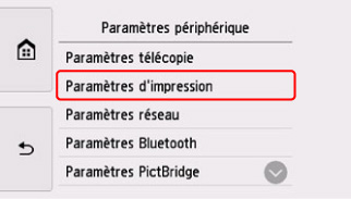 Paramètres périphérique.L'écran Paramètres périphérique s'affiche.