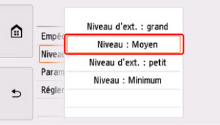 Cette section présente la procédure à suivre pour modifier les paramètres de l'écran Paramètres périphérique, les étapes permettant de spécifier Niveau d'extension étant utilisées à titre d'exemple.