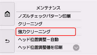 プリントヘッドのクリーニングを行っても効果がない場合は、強力クリーニングを行ってください。強力クリーニングは、通常のクリーニングよりインクを消耗しますので、必要な場合のみ行ってください。