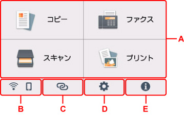 プリンターの電源を入れると、タッチスクリーンにホーム画面が表示されます。