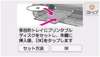 [セット方法]を選ぶと、プリンタブルディスクのセット方法が表示されます。
