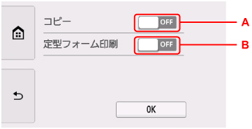 • A:コピーするときの両面印刷を設定します。