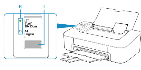 Αν το μέγεθος του χαρτιού που τοποθετήθηκε στην πίσω θήκη διαφέρει από την ένδειξη (H) της λυχνίας Χαρτί (Paper), πατήστε το κουμπί Επιλογή χαρτιού (Paper Select) (I) για να αλλάξετε την επιλογή.