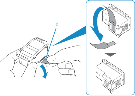 1. Tag en ny FINE-patron ud af emballagen, og fjern forsigtigt beskyttelsestapen (C).