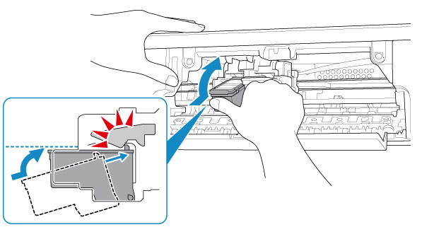 • Indsæt forsigtigt FINE-patronen, så den ikke rører ved de elektriske kontakter på FINE-patronholderen, og der ikke opstår problemer med FINE-patronen.