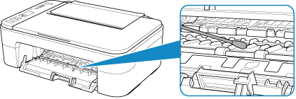 Ако проблемът не е решен след повторното почистване, издадените части във вътрешността на принтера може да са замърсени. Избършете мастилото от издадените части с памучен тампон или подобен материал.