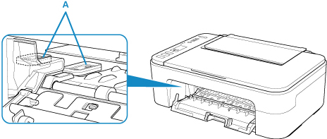 - Oblast kolem těchto dílů (A) může být potřísněna inkoustem. Na funkci tiskárny to nemá vliv.