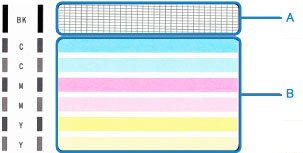 (A) deseninde eksik satır veya (B) deseninde yatay beyaz çizgiler olup olmadığını kontrol edin.
