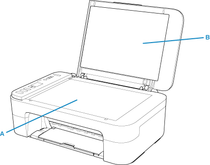 Plaka camını (A) ve belge kapağının iç tarafını (beyaz yüzey) (B) yumuşak, temiz, tüy bırakmayan ve kuru bir bezle silerek temizleyin. Özellikle cam yüzeyde herhangi bir kalıntı bırakmamaya dikkat edin.