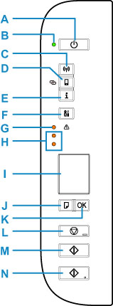 - Cancela las operaciones. Se puede pulsar este botón para cancelar el trabajo de impresión, copia o escaneado en curso.