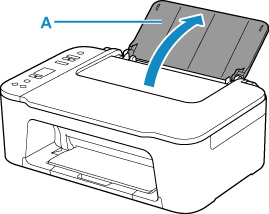 Tõmmake paberi väljastusalus (B) ja väljastusaluse pikendus (C) välja.