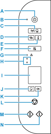 Zgornja lučka kaže stanje črne kartuše FINE, spodnja pa stanje barvne kartuše FINE.