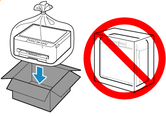 Maneggiare con cura e assicurarsi che la scatola rimanga in piano e che NON venga capovolta o girata su un lato, in quanto la stampante potrebbe subire danni e potrebbe verificarsi una fuoriuscita d'inchiostro dalla stampante.