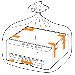 Quando si trasporta la stampante, avvolgere la stampante in una busta di plastica per evitare fuoriuscite d'inchiostro.