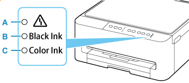 In modalità di standby copia, è possibile verificare lo stato dell'inchiostro tramite la spia Inchiostro colore (Color Ink) e la spia Inchiostro nero (Black Ink).